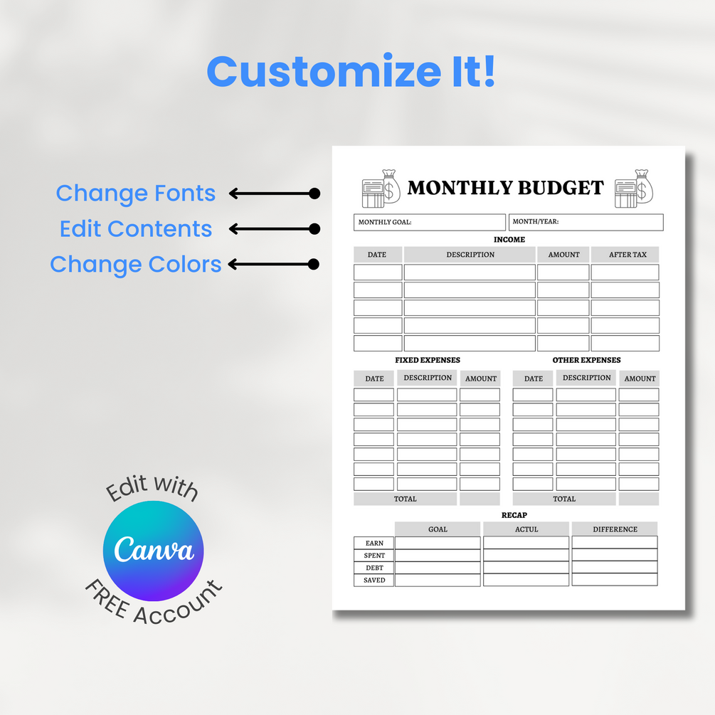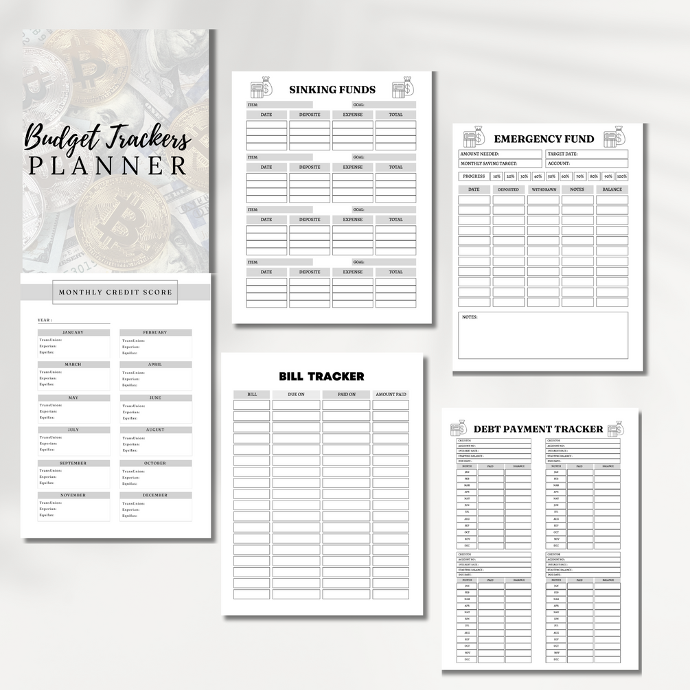 - Budget Planner & Trackers: Master your monthly cash flow with intuitive layouts to plan your income, expenses, and spending habits.