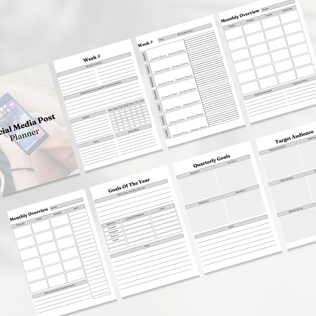 A fully customizable All-in-One Social Media Planner Bundle that includes 4 powerful planners, each tailored for the top platforms: Facebook Content Planner – Organize posts, track engagement, and plan promotions with ease. Instagram Content Planner – Map out your grid, stories, reels, hashtags, and brand voice. YouTube Content Planner – Plan video topics, scripts, thumbnails, and posting schedule. TikTok Content Planner – Stay ahead with trends, hook ideas, and short-form content tracking. Each planner is: 💻 Fully editable (compatible with Google Sheets / Canva / PDF – depending on your format) 🎯 Designed for content creators, marketers, entrepreneurs, and VAs 📅 Focused on strategy, clarity, and consistency 🛠️ Customizable to fit your brand or client workflows